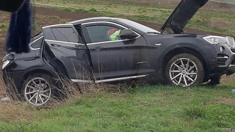 BMW X6 aruncat de pe şosea, la Constanţa, de un autobuz pe care scrie "Zboară mai mult!"