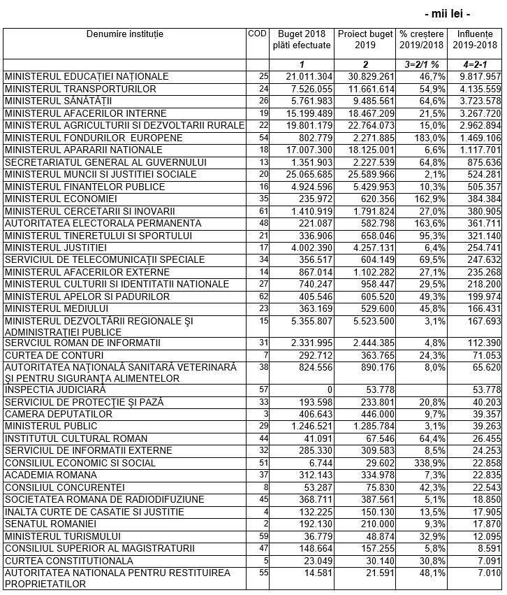 Proiectul de Buget pentru 2019, publicat de Ministerul Finanţelor. Creşterea economică, estimată la 5,5%