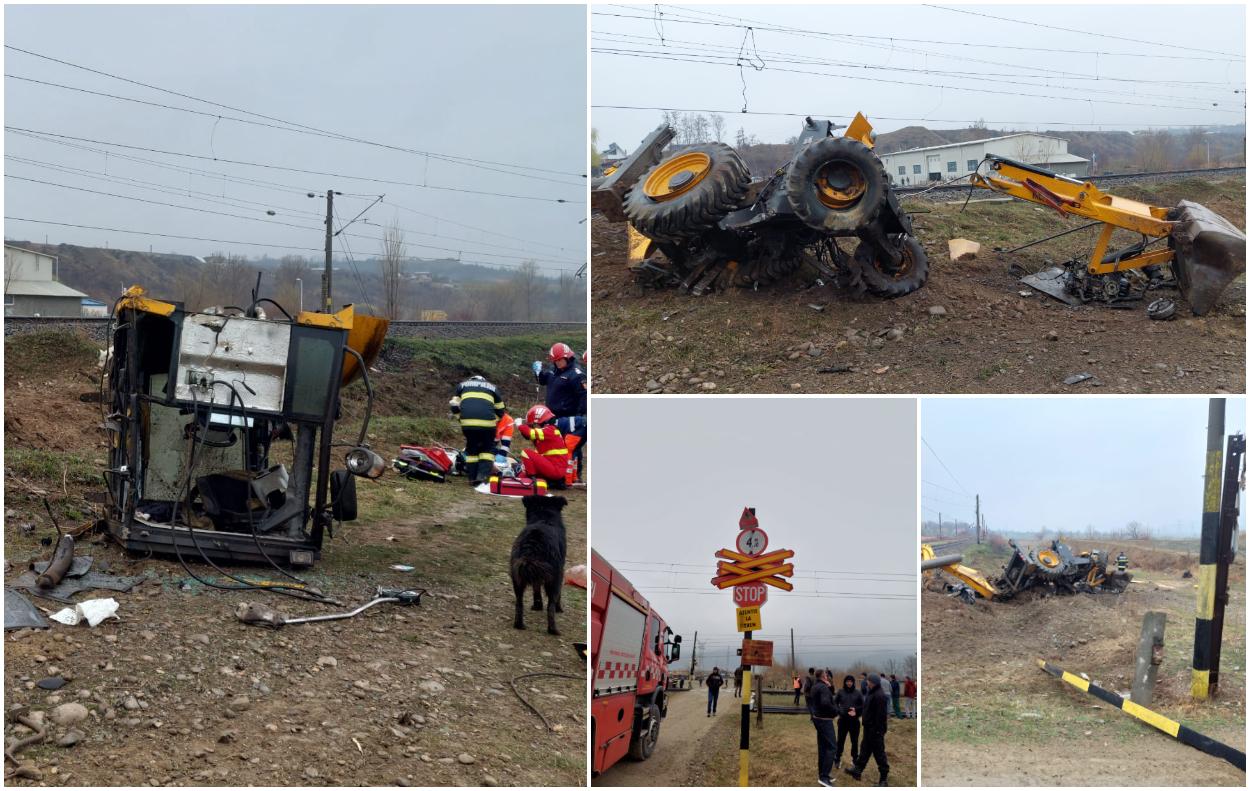 Buldoexcavator rupt în bucăţi, după ce a fost spulberat de tren la Căiuţi, în Bacău. Şoferul utilajului a murit