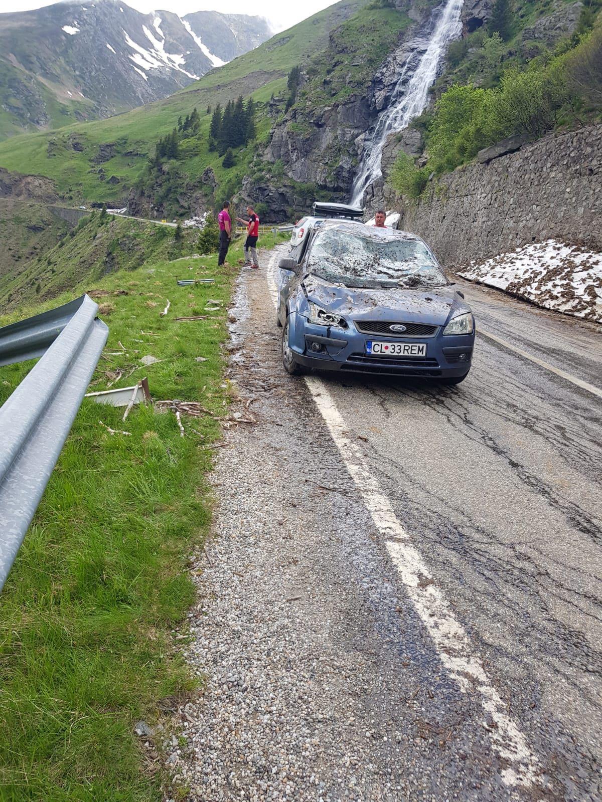Cădere masivă de pietre pe Transfăgărăşan, femeie rănită, maşină distrusă