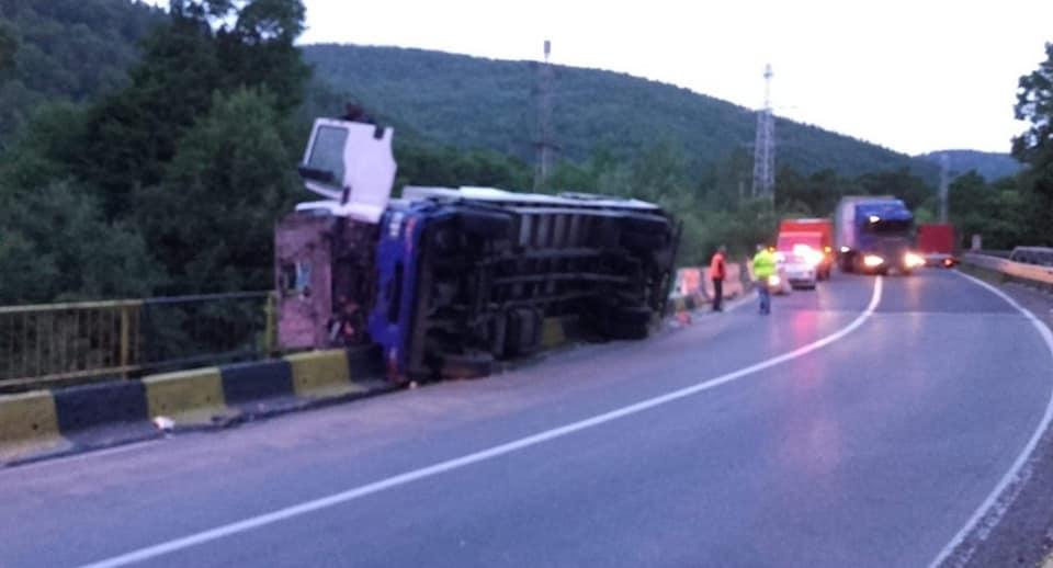 Camion despicat în două de balustrada unui pod, între Comarnic şi Sinaia