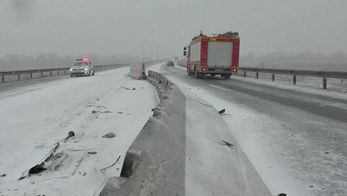 Camion răsturnat în judeţul Braşov, din cauza poleiului de pe carosabil! Şoferul a fost prins între fiarele contorsionate | Imagini dramatice