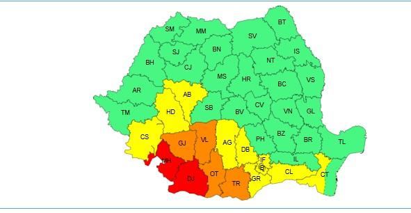 Caniculă extremă: Cod roșu în 2 județe, portocaliu în alte 4. Maxima va ajunge la 41°C