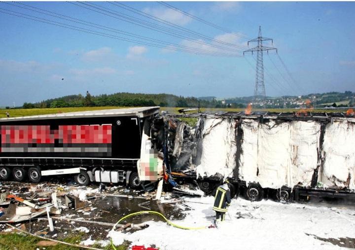 Imagini de groază pe o autostradă, după un carambol cu patru TIR-uri. Un șofer a murit, strivit în cabină