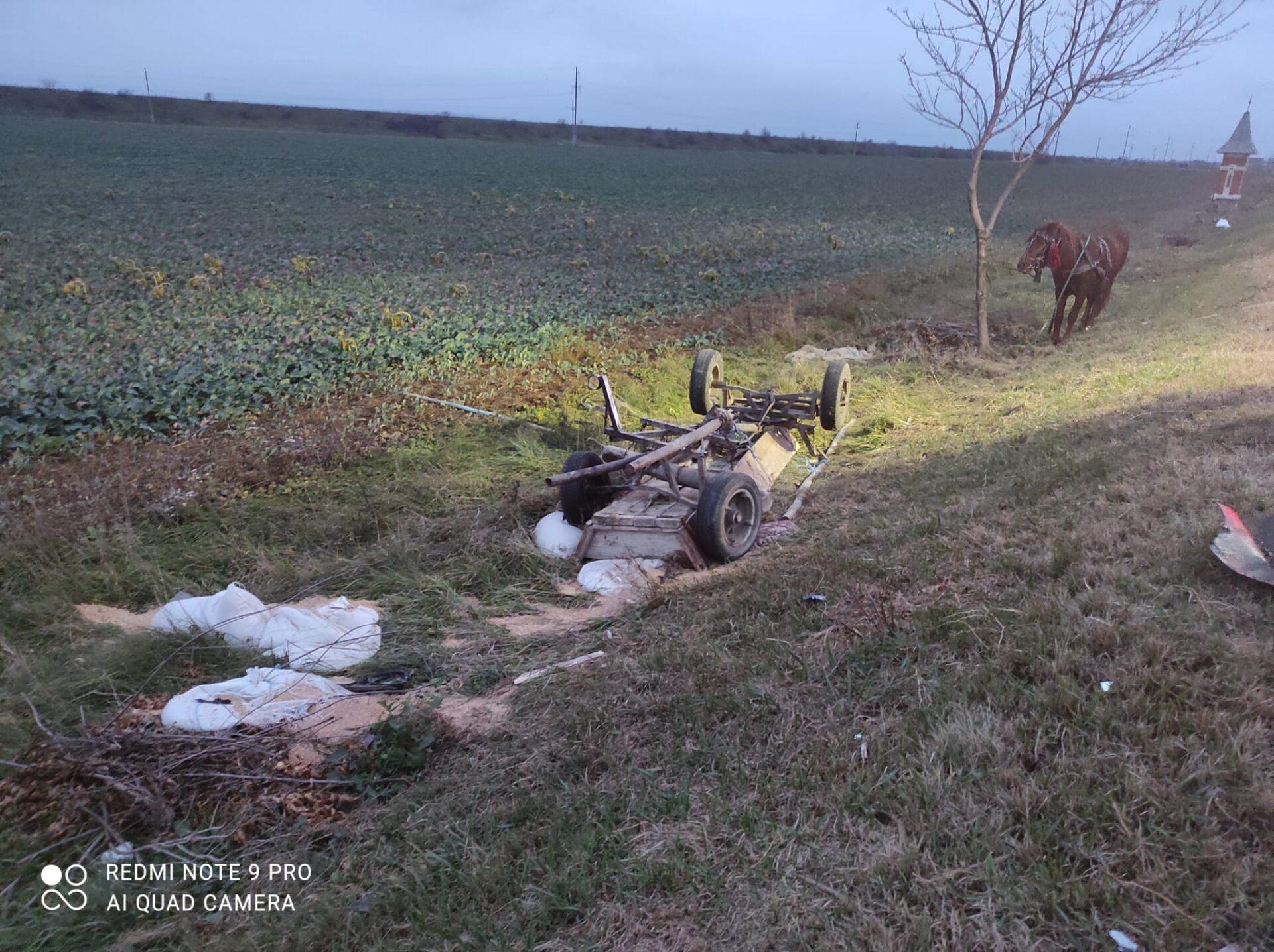 Căruță nesemnlizată, spulberată de microbuz pe un drum din Neamț. Căruțașul de 37 de ani era băut