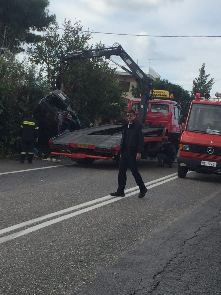 Autoturismul adolescenţilor a fost prins între un zid şi micrpbuzul românesc | Sursa foto: kyparissialive.blogspot.com