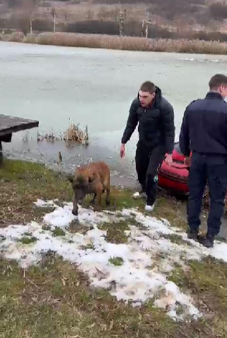 Cățel salvat de pompieri din mijlocul unui lac înghețat din Cluj | Sursa foto: ISU Cluj