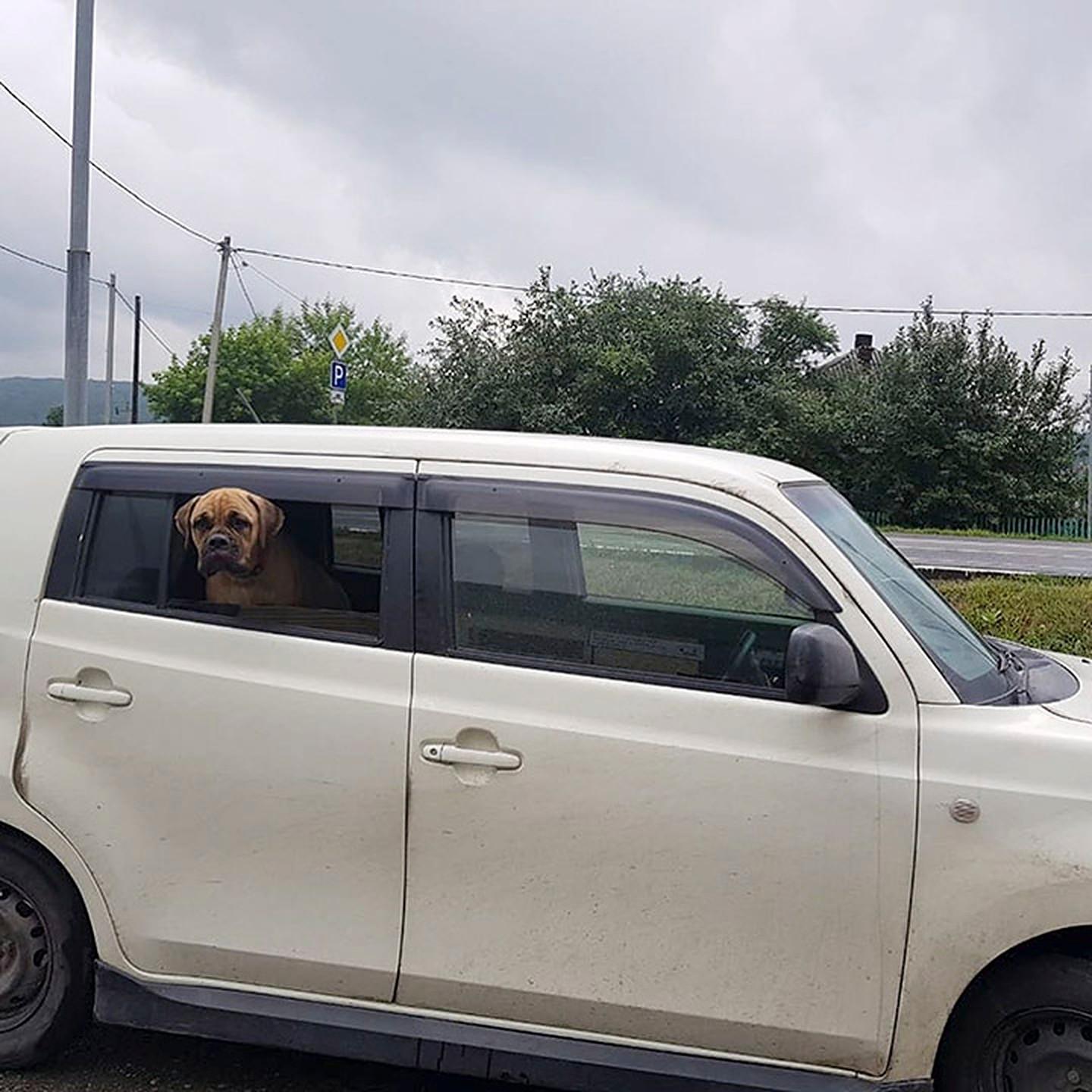 Cățelușa într-o mașină, după ce a fost adusă la adăpostul din Novosibirsk | Sursa foto: Siberian Times