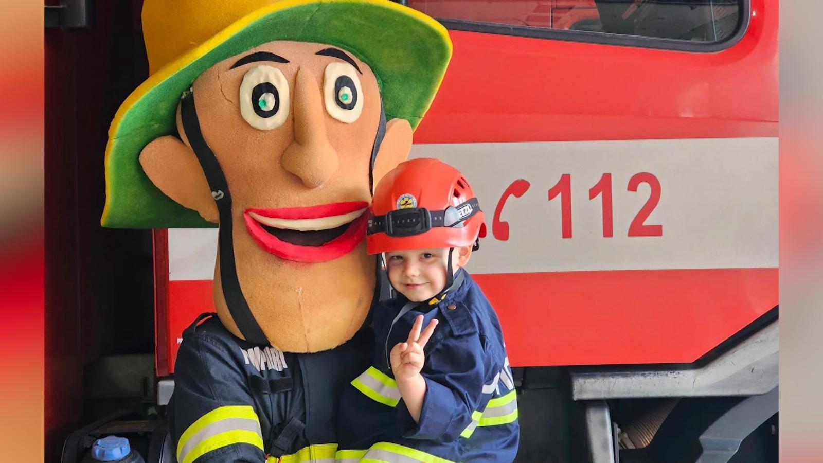 Cea mai frumoasă aniversare: Dima, un băieţel de 4 ani, sărbătorit de pompierii din Botoşani cu tort. A primit chiar şi uniformă şi cască de protecţie