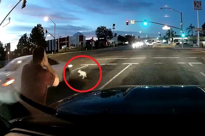 Un căţeluş abandonat a reuşit să păcălească moartea, într-o intersecţie din California | Sursa foto: captura Liveleak