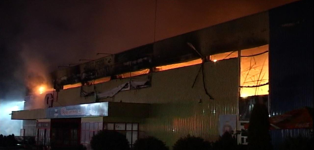 Centru comercial din Arad, DISTRUS de un incendiu violent. Pompierii s-au luptat ore în şir cu flăcările (FOTO)