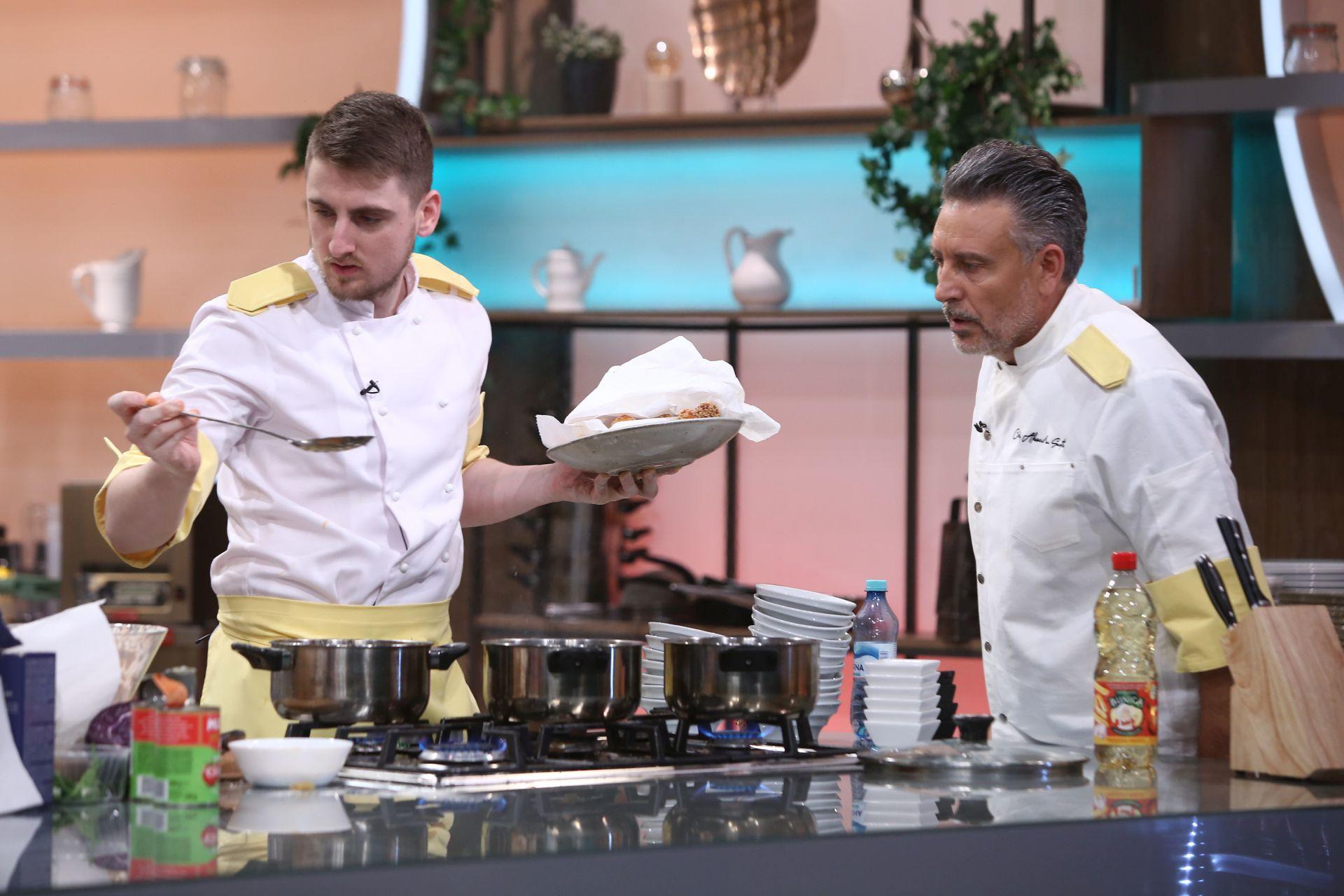 Chefi la cuțite, lider de audiență. Diseară, ritmul de la bancurile de lucru, dat peste cap de o amuletă năucitoare. Mihai Dragomir: ”Proba asta a fost un calvar!” | Imaginea 2 din 9 | Galerie Foto
