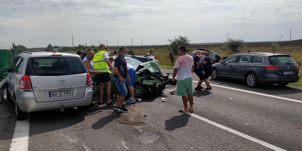 Cinci mașini lovite crunt pe Autostrada Soarelui: "Săracii, câți copii!" (video)