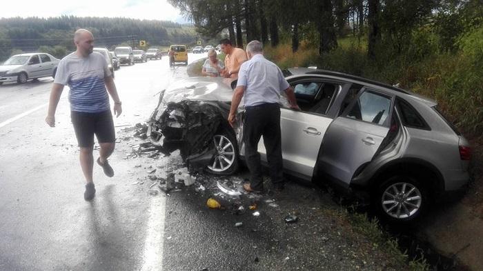 CINCI oameni sunt răniţi, printre ei şi un copil, după ce un microbuz s-a CIOCNIT FRONTAL cu un autoturism, pe DN1 (VIDEO)