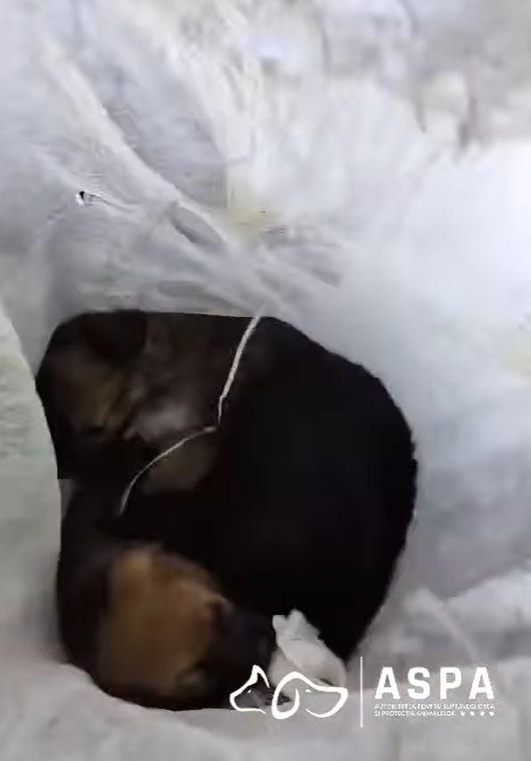 Cinci pui de câine, găsiţi abandonaţi într-o pubelă de gunoi din Sectorul 5. Micuţii au fost auziţi plângând de oamenii din zonă | Sursa foto: Captura video Facebook
