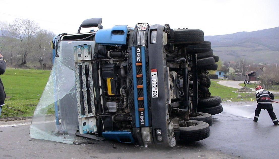 Circulație blocată pe Valea Oltului, după ce un tir s-a răsturnat