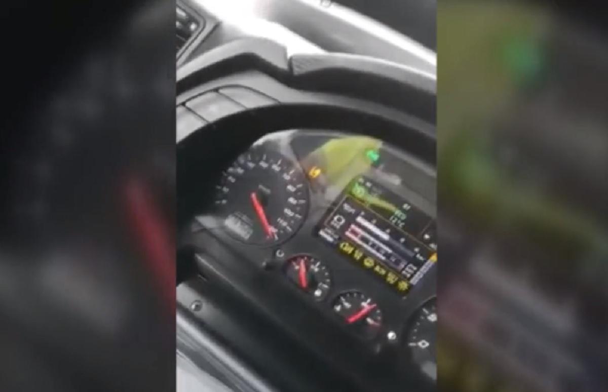 Cisternă cu 27 t de combustibil, cu peste 120 la oră pe autostradă. Şoferul fericit: "Lume, lume!" (video)