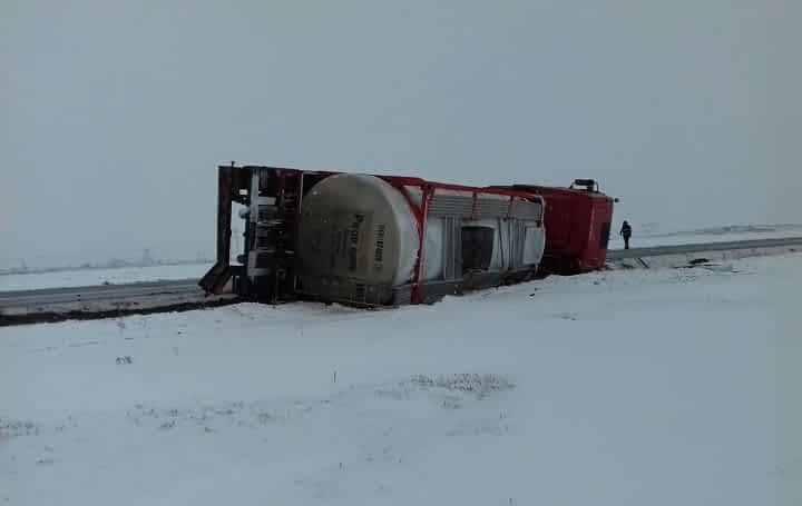 Circulaţia a fost întreruptă de pompieri, după răsturnarea cisternei, pe DN2 | Sursa foto: Observator