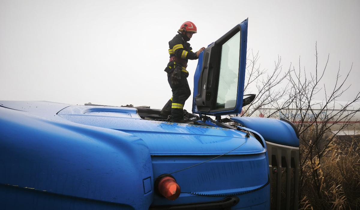 Cisternă ucraineană cu 19 tone de GPL, răsturnată pe un drum din Vaslui