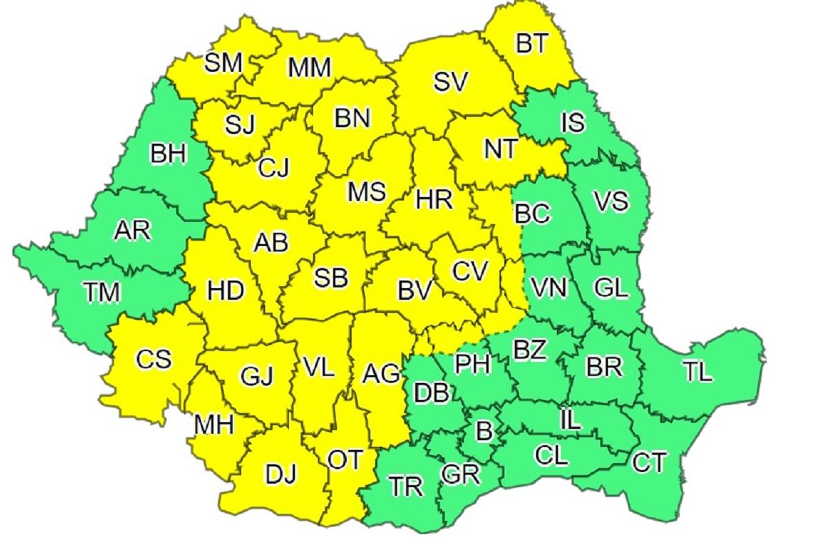 ANM a extins codul galben de furtuni, ploi torenţiale şi grindină în aproape toată ţara