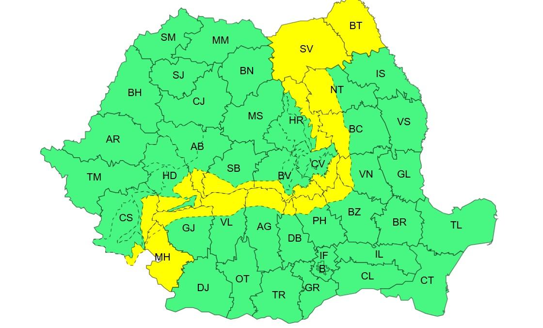 Cod galben de ninsori, viscol şi polei în 18 judeţe şi Bucureşti. Prognoza specială pentru Capitală