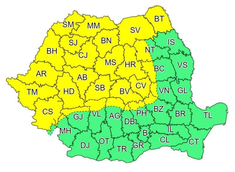Atenţionări de vreme severă în toată ţara. Cod galben de frig şi vijelii până luni noapte