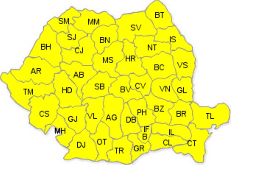 Cod galben de NINSORI şi POLEI în toată ţara. Cod portocaliu de VISCOL la munte