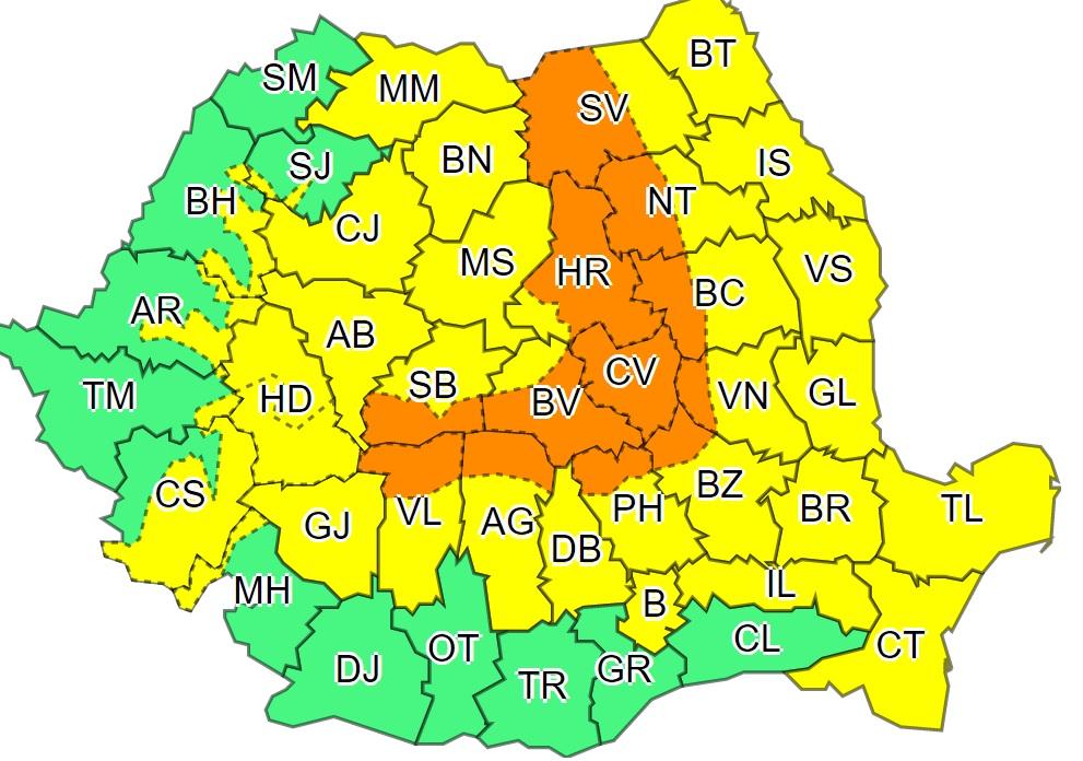 COD PORTOCALIU de vreme rea! Meteorologii anunţă NINSORI ABUNDENTE şi VÂNT PUTERNIC