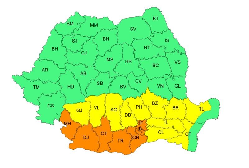 Codurile galben şi portocaliu de caniculă, extinse. La noapte, vijeliile lovesc în mai multe judeţe