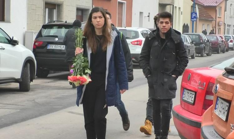 Colegii de liceu o plâng pe Ioana Buliga, fata de 18 ani ucisă de propriul tată. Zeci de tineri au venit la morgă cu flori şi lumânări (Video)