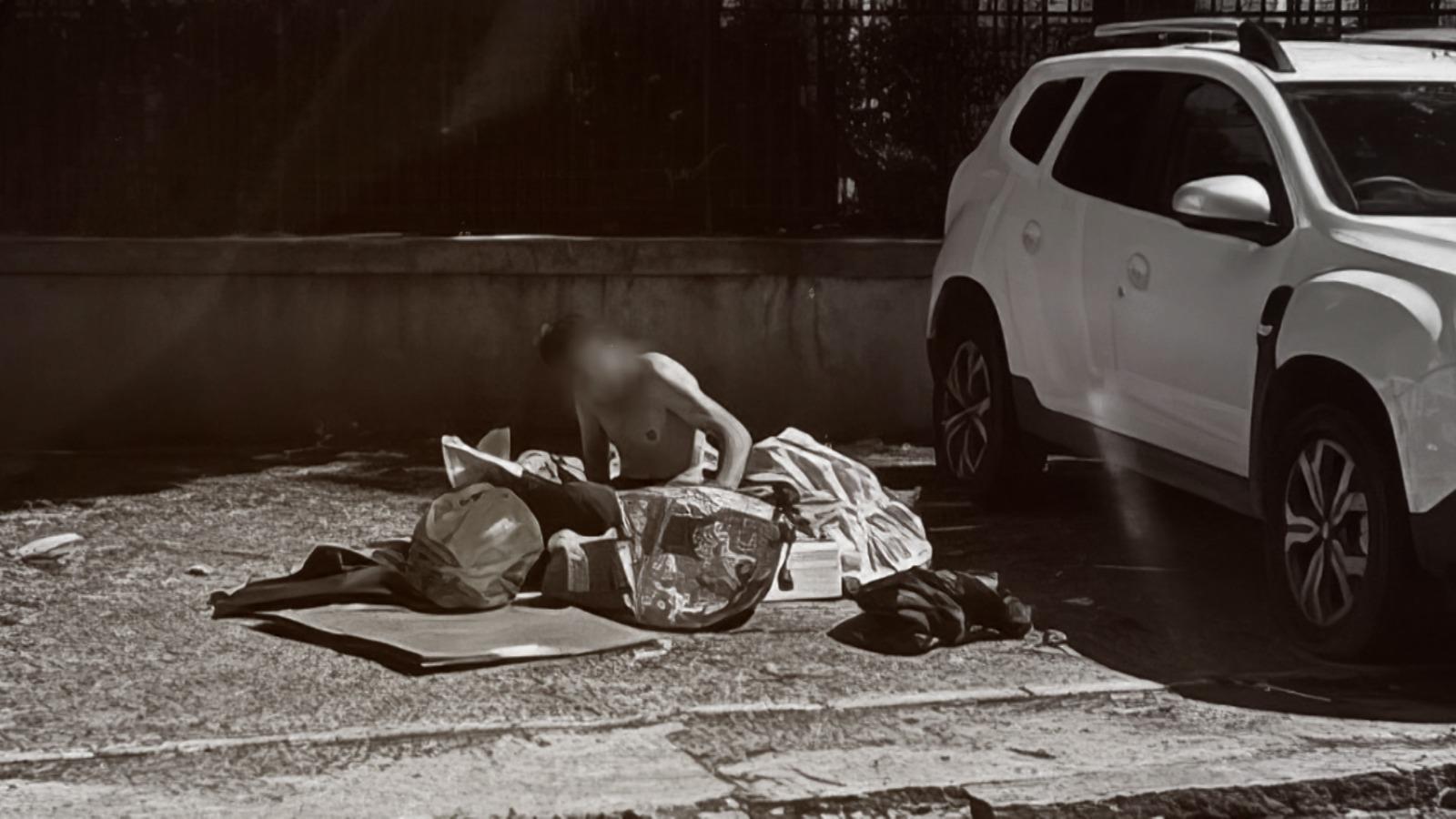 Bărbat surprins de echipa Observator cum se droghează în plină zi, lângă Curtea de Apel Bucureşti. Oamenii din zonă vor să rezolve singuri problema
