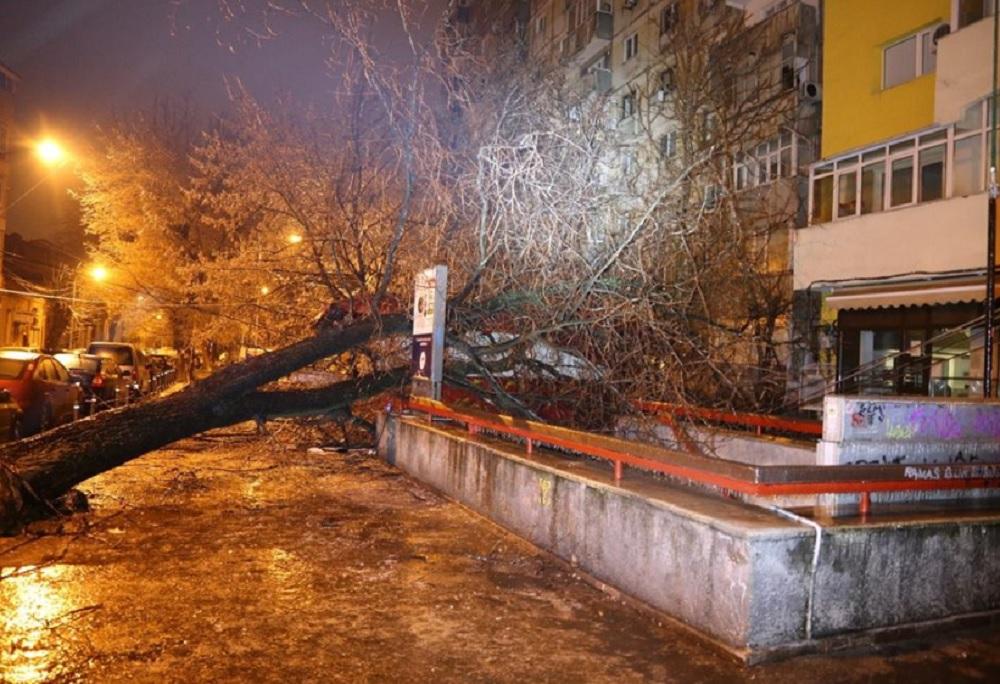 Zeci de copaci doborâţi de vânt în Bucureşti. 49 de maşini avariate, în ultimele ore