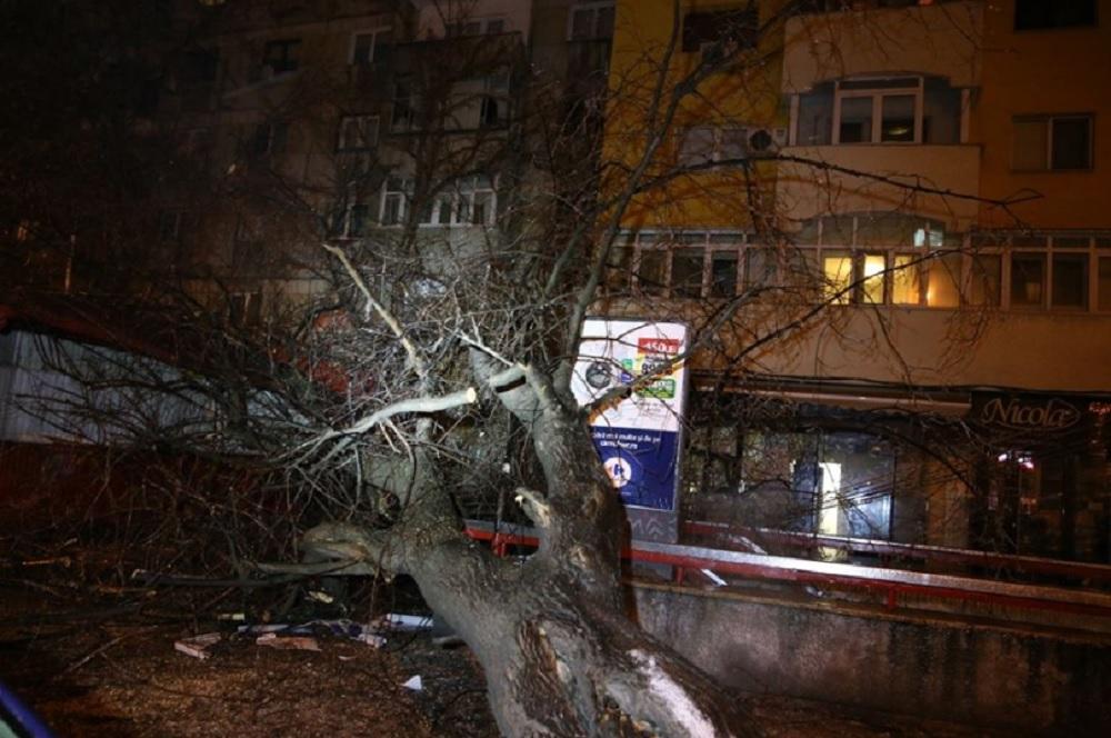 Zeci de copaci doborâţi de vânt în Bucureşti. 49 de maşini avariate, în ultimele ore