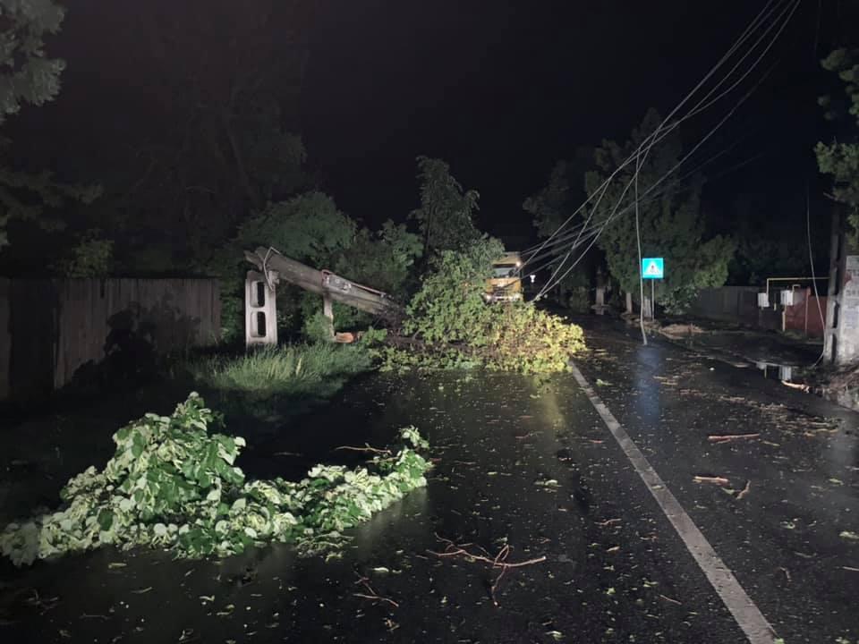 Copaci imenşi smulşi din rădăcini, la Corabia, de furtuna care a lovit oraşul miercuri seara
