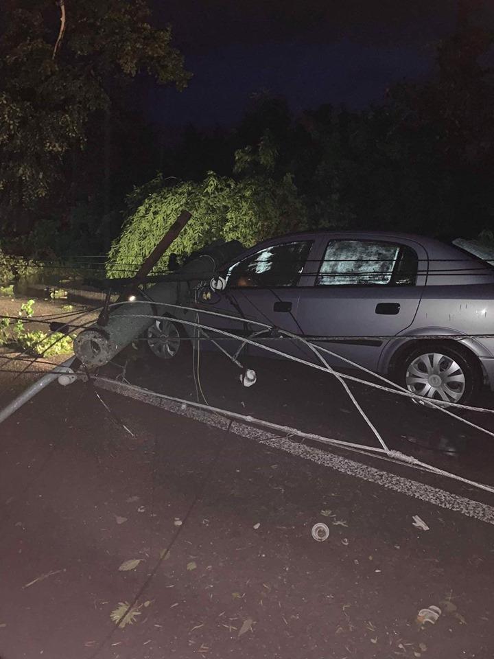 Copaci imenşi smulşi din rădăcini, la Corabia, de furtuna care a lovit oraşul miercuri seara
