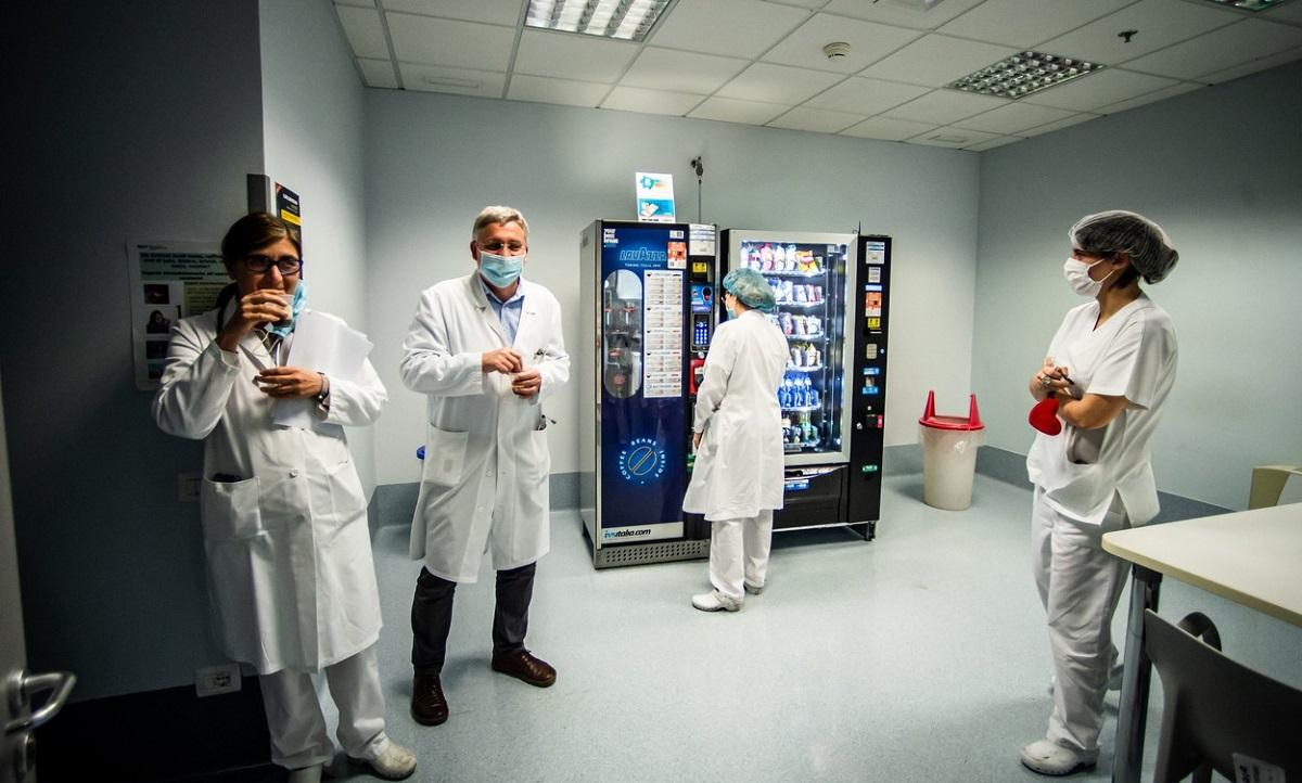 Cadrele medicale în timpul unei scurte pauze la Spitalul Papa Giovanni XXIII, Bergamo, Italia | Sursa foto: Profimedia