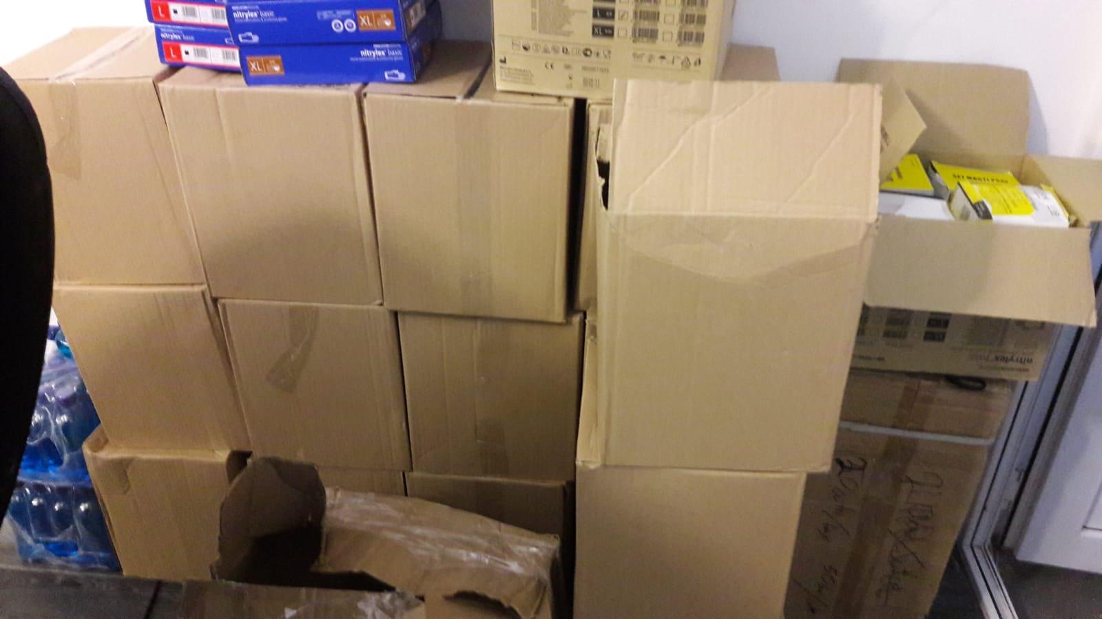 Percheziții în casele bișnițarilor de produse medicale. Cutii întregi cu măști și dezinfectant confiscate
