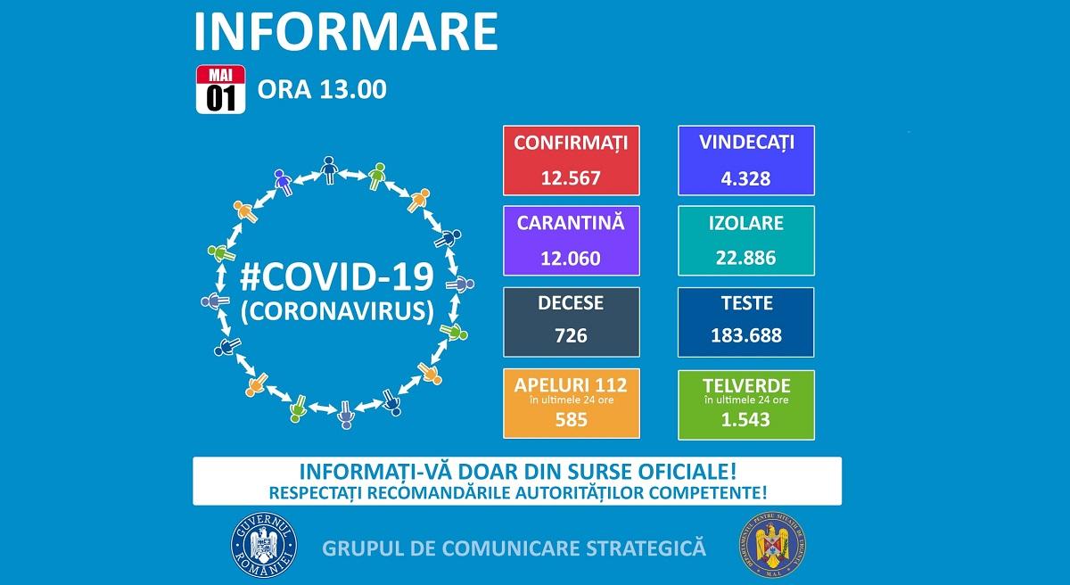 Coronavirus 1 mai. 744 decese şi 12.567 de îmbolnăviri în România