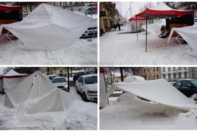 Vremea rea le-a adus pierderi însemnate comercianţilor de mărţişoare. La Arad, corturile le-au fost distruse de zăpadă şi viscol | Sursa foto: Sursă: aradon.ro