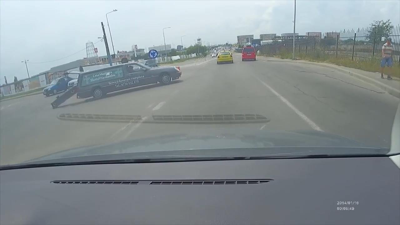 Coșciug pierdut în intersecție de mașina de pompe funebre (Video)