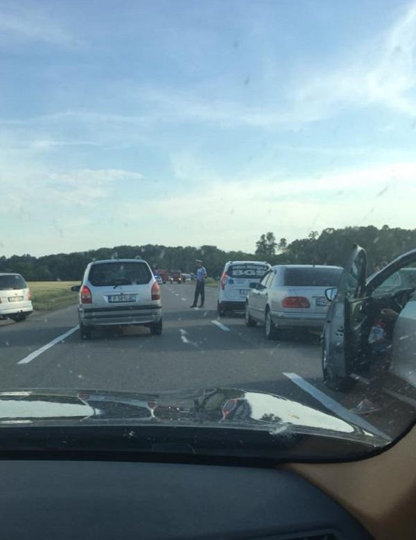 Cozi uriașe pe DN 2, la Sineşti, după ce o cisternă încărcată cu bitum s-a răsturnat