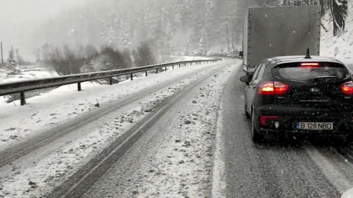 Cozi pe zeci de kilometri la munte din cauza zăpezii. Situația drumurilor naţionale închise (Video)