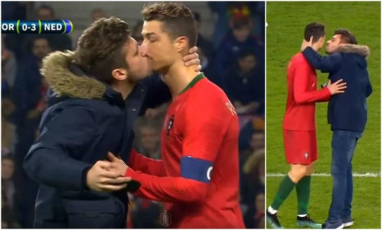 Cristiano Ronaldo, sărutat de un fan în timpul meciului Olanda - Portugalia! Tânărul a pătruns pe teren în minutul 62 (Video)