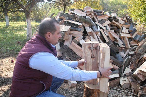 O cruce mare s-a ivit dintr-un buştean, când omul a dat cu toporul. Sătenii au venit în număr mare să vadă minunea
