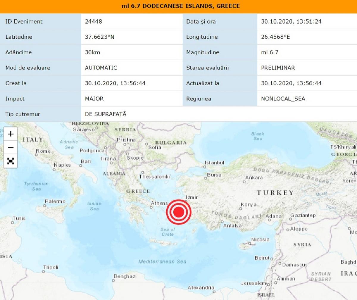 Cutremurul din Arhipelagul Dodecanez a fost unul de suprafață | Sursa foto: INFP