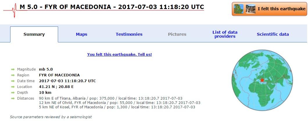 CUTREMUR PUTERNIC în Macedonia! Seismul s-a produs în urmă cu puţin timp, la doar 10 kilometri adâncime