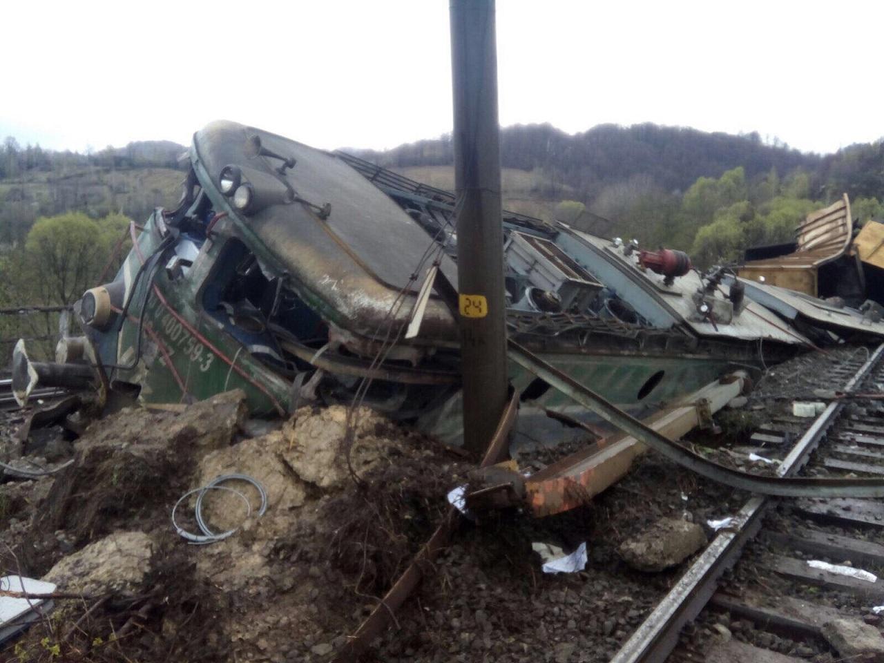 DEZASTRU pe calea ferată! PRIMELE IMAGINI cu trenul deraiat lângă Petroşani. Şase vagoane şi locomotiva au căzut într-o râpă