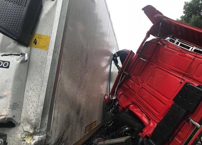 Dezastru pe şosea, la Milova, în Arad. Accident cu două TIR-uri şi un autoturism, şoferul unuia dintre camioane e încarcerat