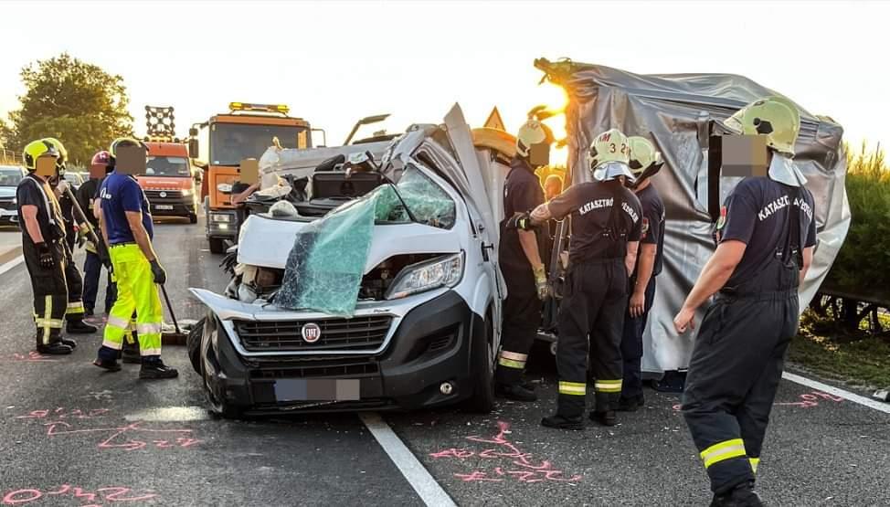 Dezastru provocat de un șofer român, pe autostrada M1 din Ungaria. Sătmăreanul s-a înfipt cu duba într-un camion oprit din cauza unui alt accident