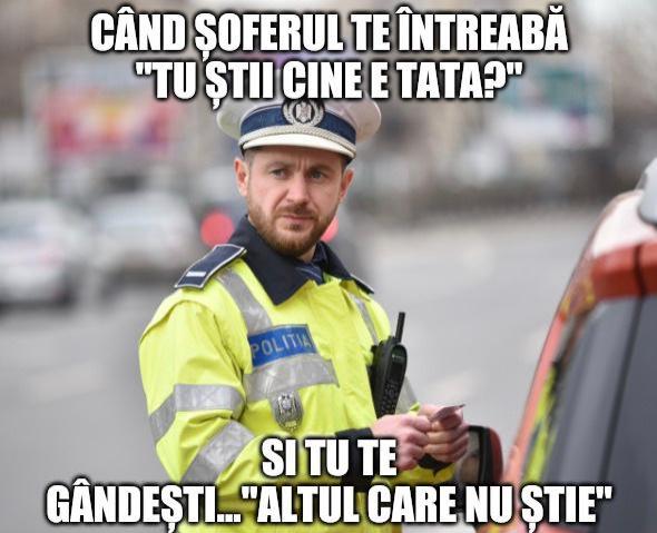 Dialog între un șofer cu telefonul în mână la volan şi poliţistul care l-a oprit: "Știi cine e tata? Ştii sau nu?"